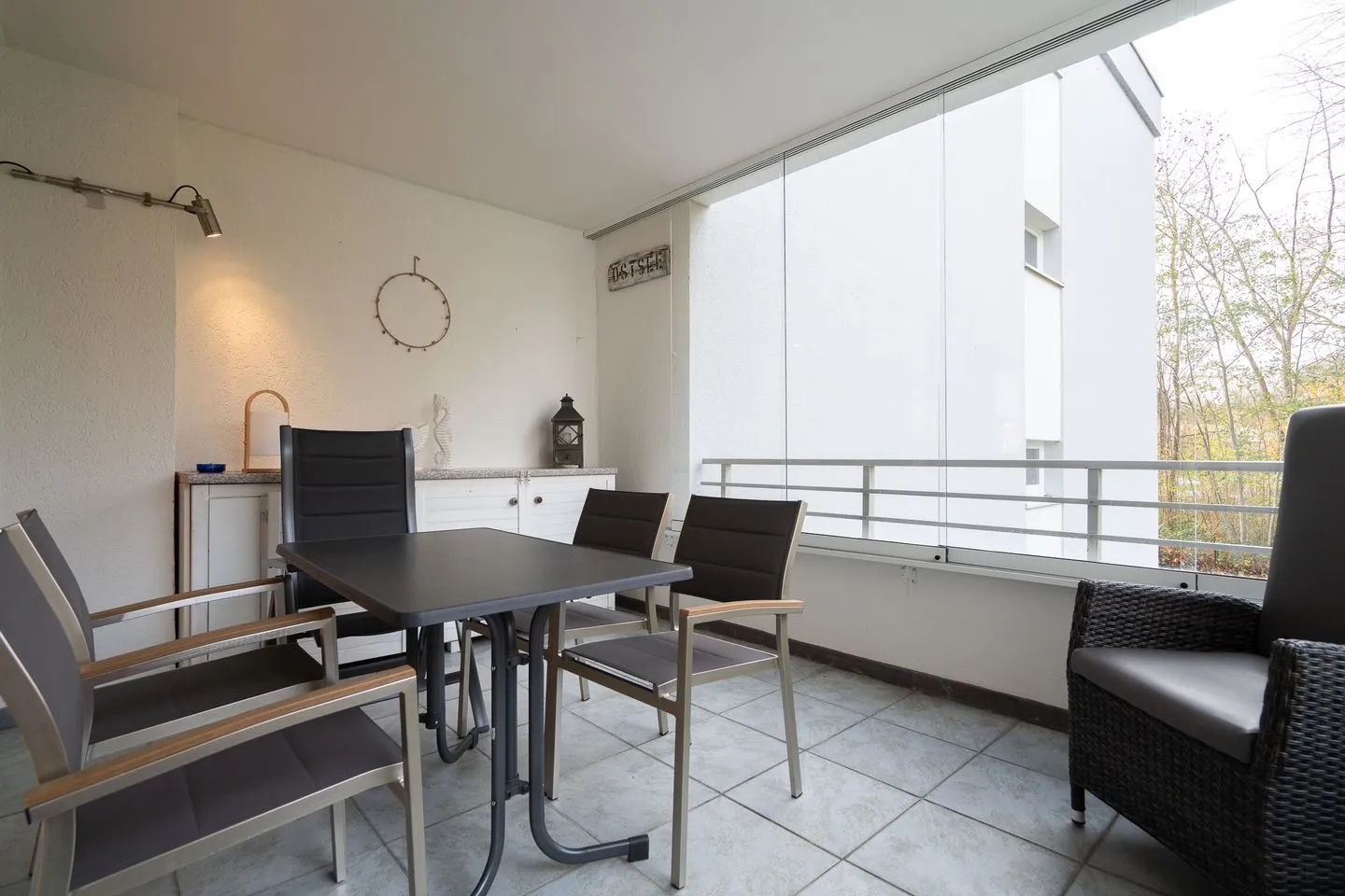 Dieses moderne 2-Zimmer-Appartement bietet Euch auf ca. 50 m² eine einladende Kombination aus Stil, Komfort und entspannter Atmosphäre – perfekt für eine Auszeit an der Ostsee. Der Wohnbereich ist großzügig geschnitten, lichtdurchflutet und hochwertig eingerichtet. Ein echtes Highlight ist die große Loggia: komplett verglast, flexibel verschiebbar und bei Bedarf vollständig zu öffnen – ideal für jede Jahreszeit. Ihr genießt hier einen geschützten Platz im Grünen, egal ob beim Frühstück, Lesen oder einfach zum Runterkommen nach einem Strandtag. Zudem stehen Euch eine hochwertige Ausstattung, zwei TVs, WLAN (kostenfrei, bei Störungen kein Anspruch auf Erstattung oder Ersatz), ein eigener Parkplatz und viele liebevolle Details für einen rundum angenehmen Aufenthalt zur Verfügung.