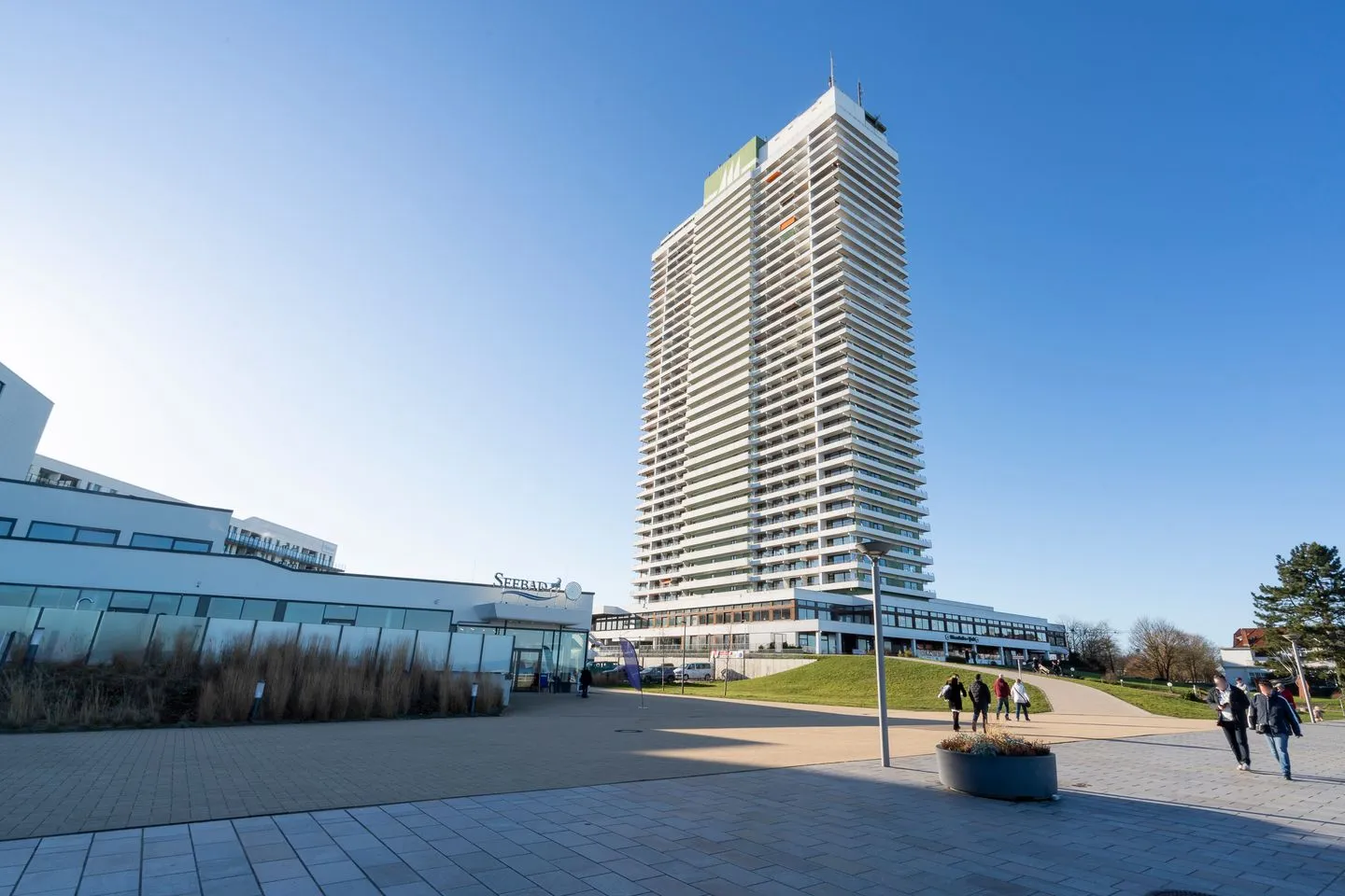 Im 14. Stock des Maritim in Travemünde erwartet Euch dieses moderne Appartement mit traumhaftem Panoramablick über Ostsee, Strand, Promenade und Trave. Der offene Wohn- und Schlafbereich verbindet stilvolles Design mit gemütlichem Wohngefühl – mit komfortablem Doppelbett, gemütlichen Sesseln, Flachbild-TV und Essplatz am Fenster. Die integrierte Küchenzeile ist praktisch ausgestattet mit Kochfeld, Mikrowelle, Kaffeemaschine und Wasserkocher. Das moderne Duschbad mit Handtuchtrockner sorgt für frische Urlaubsmomente. Ein echtes Highlight ist der Balkon mit Weitblick über die Ostsee – perfekt für Kaffee am Morgen oder den Sundowner am Abend. Ein PKW-Stellplatz in der Tiefgarage gehört ebenfalls dazu. Dank der direkten Lage an Strand und Promenade erreicht Ihr Cafés, Restaurants und Boutiquen in wenigen Schritten. Dieses Appartement ist der perfekte Ort für Eure Auszeit an der Lübecker Bucht.